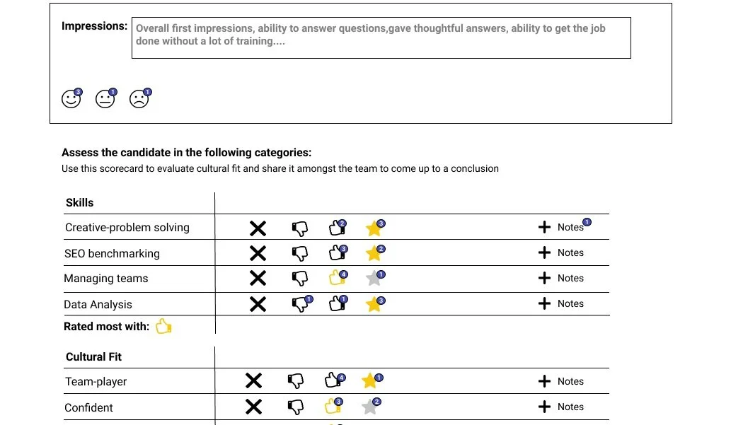 To avoid group think, team members can individually complete their scorecards of applicants and are permitted to view other’s opinions after they submit their own scorecard.